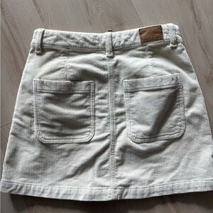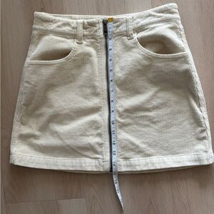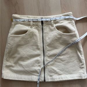 Stylish cream corduroy skirt. Features front zipper and pockets. Perfect for casual wear.