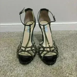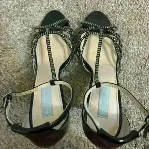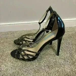 Blue by Betsey Johnson SB Rosin Black Embellished Sandal Heels Size 9