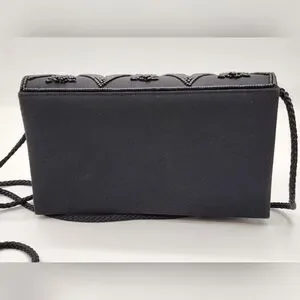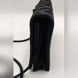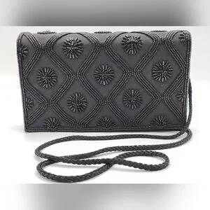 This elegant black beaded bag is perfect for any occasion. Its intricate design adds a touch of sophistication to your outfit.