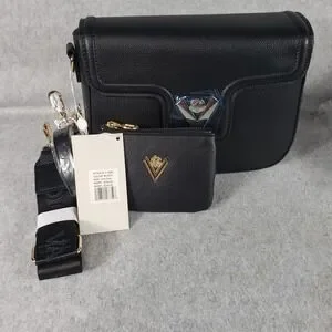 Valentino Orlandi Black Leather Crossbody Bag w/ Coin Pouch & Shoulder Strap Set