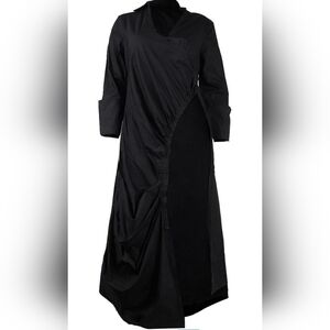 🆕 Women's Deep V Neck, Ruched, Long Sleeve, Side Split, High-Low, Irregular Hem, Asymmetrical Maxi Shirt/Dress. Has Shoulder Pads. NWOT