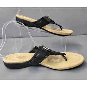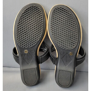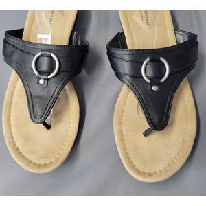 St. Johns Bay Zander Sandals Womens 9.5M Black Flip-Flops Thong Low Wedge