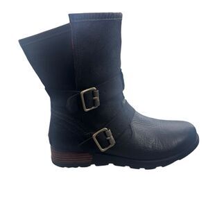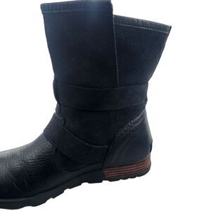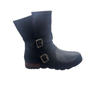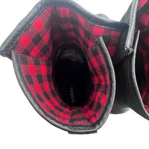 Sorel Women 7 38 Major Moto Fold Over Boot Suede Black Leather buckles Plaid