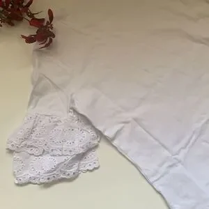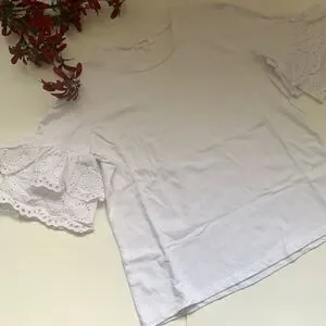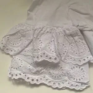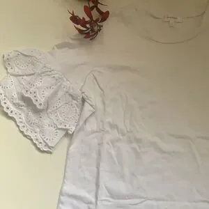 White cotton top with ruffle sleeves by Stella Tweed. Romantic, trendy and classy. Excellent condition.