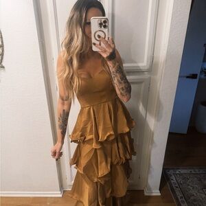 12th Tribe Selene Gold Ruffle Maxi Dress Size SS