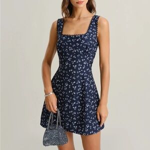 Rihoas Navy Floral Square Neck Slip Mini Dress