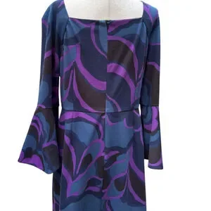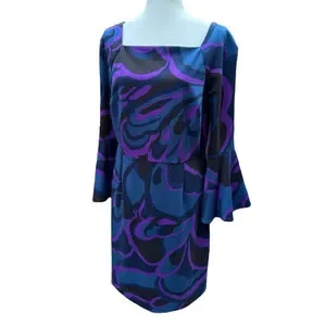 #TrinaTurk, #PlusSizeStyle, #Size14Dress, #BellSleeveDress, #StatementDress, #FallFashion, #CocktailDress, #OfficeToEvening, #BoldPrintDress, #DesignerStyle, #RetroVibes, #ColorblockFashion, #WomensFashion, #SustainableStyle, #ClosetGoals, #PurpleAndBlue, #SquareNeckline, #CurveFriendly, #TrinaTurkStyle