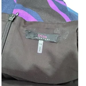 Stand out in this bold and beautiful Trina Turk sheath dress featuring vibrant swirls of purple, blue, and black.