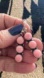 These earrings are a pair of handmade dangle earrings featuring queen pink conch shells. Each earring consists of three polished, oval-shaped pink conch shell stones, which are set in individual scalloped jaw tooth sterling silver bezels and connected vertically by small silver beads. The silver is oxidized in order to enhance the beauty of the these immaculate queen pink conch stones. The total length of each earring is approximately 1.70 inches, and the pair has a combined weight of 8.5 grams. The earrings are suspended from a simple French wire hook, giving them a graceful and elegant look. The natural, light pink coloring of the conch shell stones makes them a versatile accessory suitable for a variety of styles.