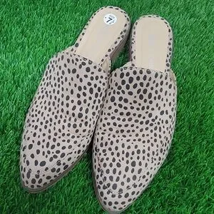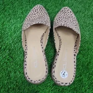 CL by Laundry cheetah Chic mules with a tan base and black cheetah dots. Perfect for casual outings. Womens 7.5 in great lightly used condition.