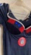 Navy blue police dress costume with silver trim. Watch my video to see how the bra lights up and flashes red and blue. Features a zipper closure and adjustable belt.