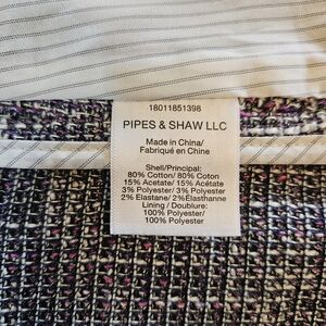 Gorgeous tweed blazer with black ribbon contrast stitching. Interior zipper is for attaching optional dickies (sold on VB website).