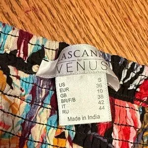 Vibrant two-piece set featuring a tropical floral print. Includes a strapless top and wide-leg pants. Perfect for a summer outing. Worn one time! Waist looks tiny but is very stretchy! Waits is 12 inches but stretches. I have a 29 inch waist and these worked for me! Tube top is 14 inches across and also stretchy!