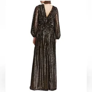 Worn once to a wedding. Perfect condition formal halston sequin gown. Bottom of dress has slight fraying from walking around. Can be easily cleaned up. Beautiful dress for a fall or winter wedding guest