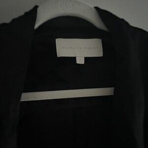 Shimmering black velvet composes this Michelle Mason wrap dress. Robe-style shawl collar and tie straps at the hip make an updated feminine take on a classic smoking jacket/robe style.