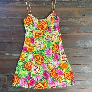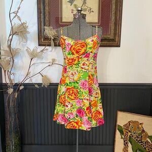 Jams World Vibrant Floral Sundress Slip Mini Dress Made in Hawaii - Sz XS 🧡🎀