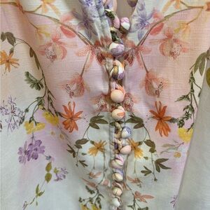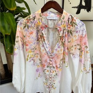 Chic floral blouse with vibrant hues. Lightweight and stylish. Perfect for any outing.
