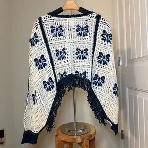 NWT House of Harlow white/blue crochet butterfly sweater