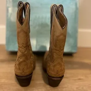 Corral boots saddle stitched . Very gently worn women’s cowboy boots light tan with stitch vintage style. Size 8 1/2 with small heel. Original box.