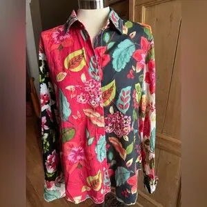 Cino Made in India Button down Shirt Size Large Multi Colored Blouse