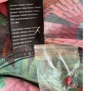Bring the jungle to the streets in this absolutely stunning Farm Rio dress! Known for bold, artistic prints and this piece delivers with a magnificent display of tropical parrots, oversized florals, and lush palm leaves in electric pinks, oranges, greens, and blues against a black background.