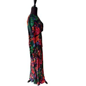 FARM Rio Black Blooming Garden Lenzin Ecovero Viscose Midi Dress Size M