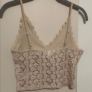 NWOT Beige Floral Crochet Lace Top