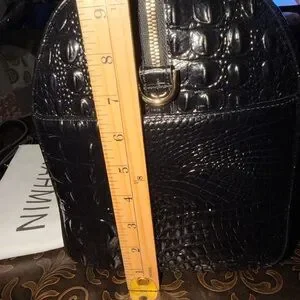 Chic croc embossed satchel with sleek gold accents. Perfect for any occasion.