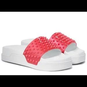 Christian louboutin pool fun donna slides sandals flat floride white sz 40.5