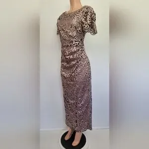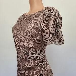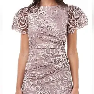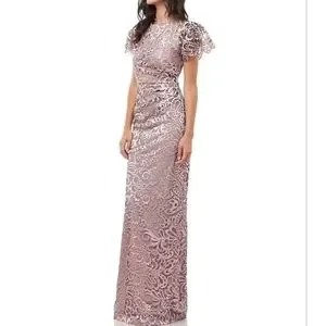 JS Collections Embroidered Gown Boat Neck Flutter Sleeve Size 10