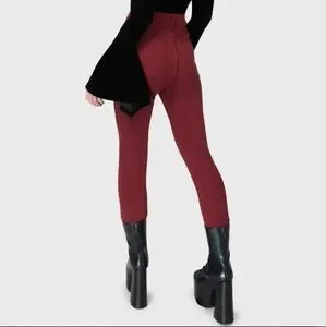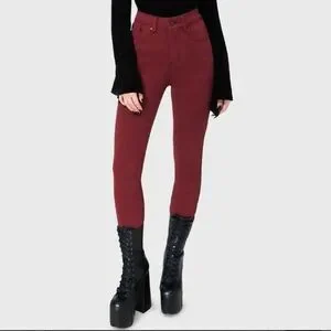 Elevate your style with these high rise jeans. Rich burgundy color. Perfect for a bold look.