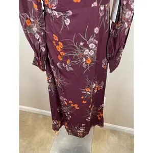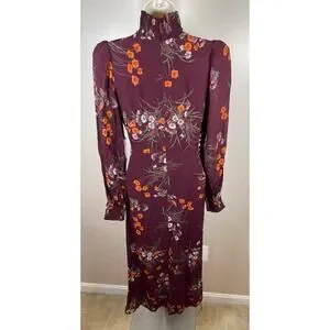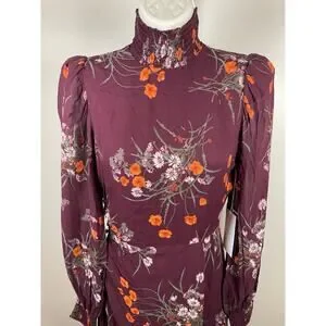 Reformation Aude Floral Smocked Georgette Turtleneck Long Sleeve Midi Dress Sz 0