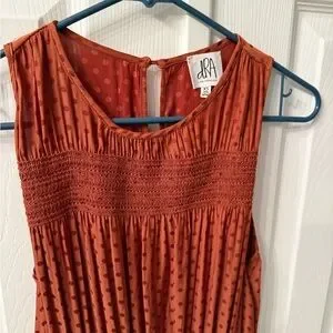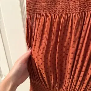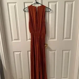 Chic burnt orange jumpsuit with a flattering silhouette, super lightweight and flattering. Perfect for University of Texas games!