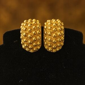 A stunning trio of authentic E. Pearl signed vintage earrings from my mother’s private collection. Each pair features the signature mid-century hugger style with thick, non-magnetic, high-quality gold-tone plating and couture-level detailing that made E. Pearl a department-store favorite during the 1960s