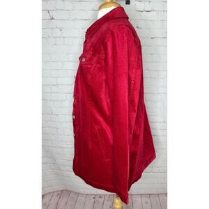 Chico’s Red Velveteen Long Jacket Womens Large
