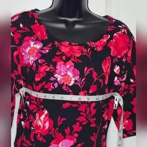 🌺 APT. 9 Black & Red Floral Short Sleeve Swing Dress – Women’s XL