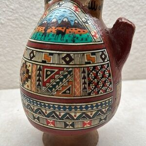 Cusco Peru Inca Jaguar Vessel Pitcher Jug Clay Folk Art Pottery Vintage.