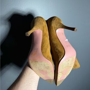 Escada Camel Suede Knee High Heeled Boots Size EU 39