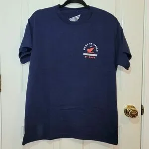 Men's L tee. Navy with small Honda design on front chest left and larger design on back.