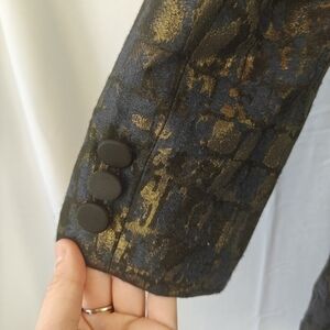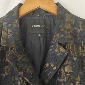 Lafayette 148 Gold Metallic Navy Painted Button Suit Jacket Women's Size 10