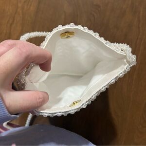 Cute little beaded 7" X 7 1/4" bag with 20" strap drop. Sparkly beads with smaller white beads & beaded strap. Bag has a magnetic closure & satin like lining. no tag. In mint condition.