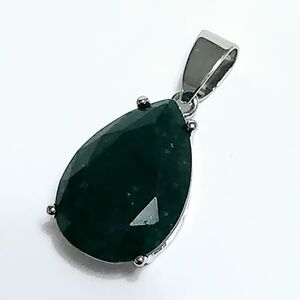 Large Emerald 18x12 mm teardrop Silver Pendant