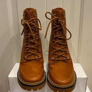 Women's Miller Mixed-Materials Lug Sole Brown Leather Lace-Up Ankle Boots