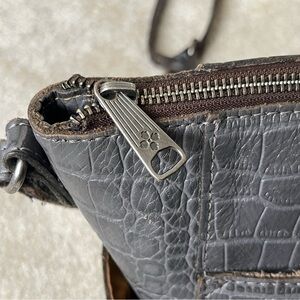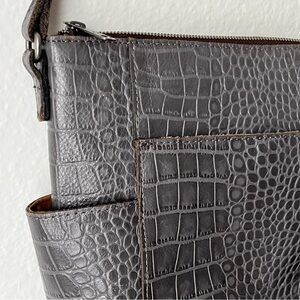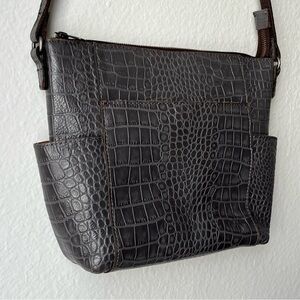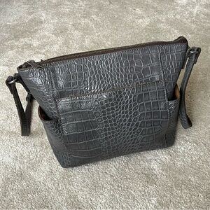 Patricia Nash Leather Croc Embossed Crossbody Bag Purse-Gray-Zipper-EUC-Classic