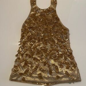 Elegant gold halter blouse with intricate embellishments. Perfect for adding glamour to your look.