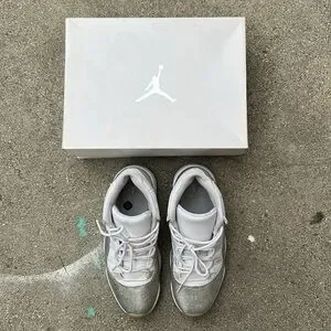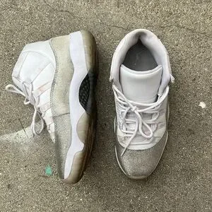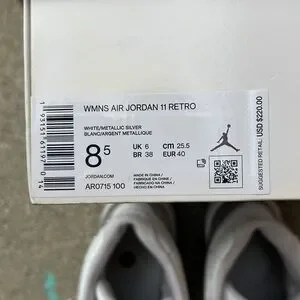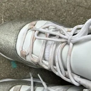 Used Jordan 11 size 8 1/2 and women’s shoes do have discoloration that can easily be cleaned due to being inside the shoebox for months