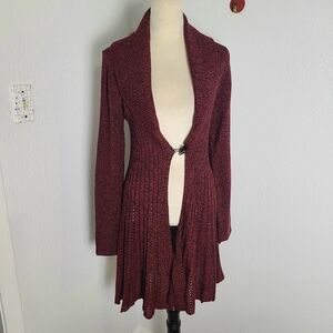 By Design Burgundy Open-Front Long Sweater with Loophole @ Waist, Size Medium