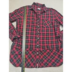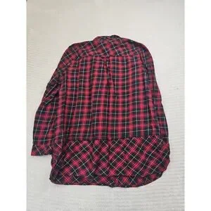 This J. Jill women's large plaid button-up shirt in red and black is a stylish and versatile addition to any wardrobe. The regular fit and colorful theme make it a comfortable and eye-catching choice for casual or dressed-up occasions. Made from high-quality materials, this shirt is sure to be a favorite for its classic style and trendy design.