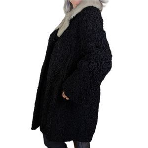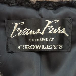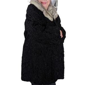 Vintage Black 50s Persian Lamb Karakul Gray Mink Collar Fur Coat Size Large