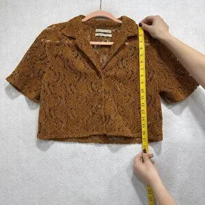 Urban Outfitters Shirt Womens Medium Brown Lace Cropped Button Short Sleeve